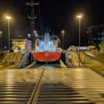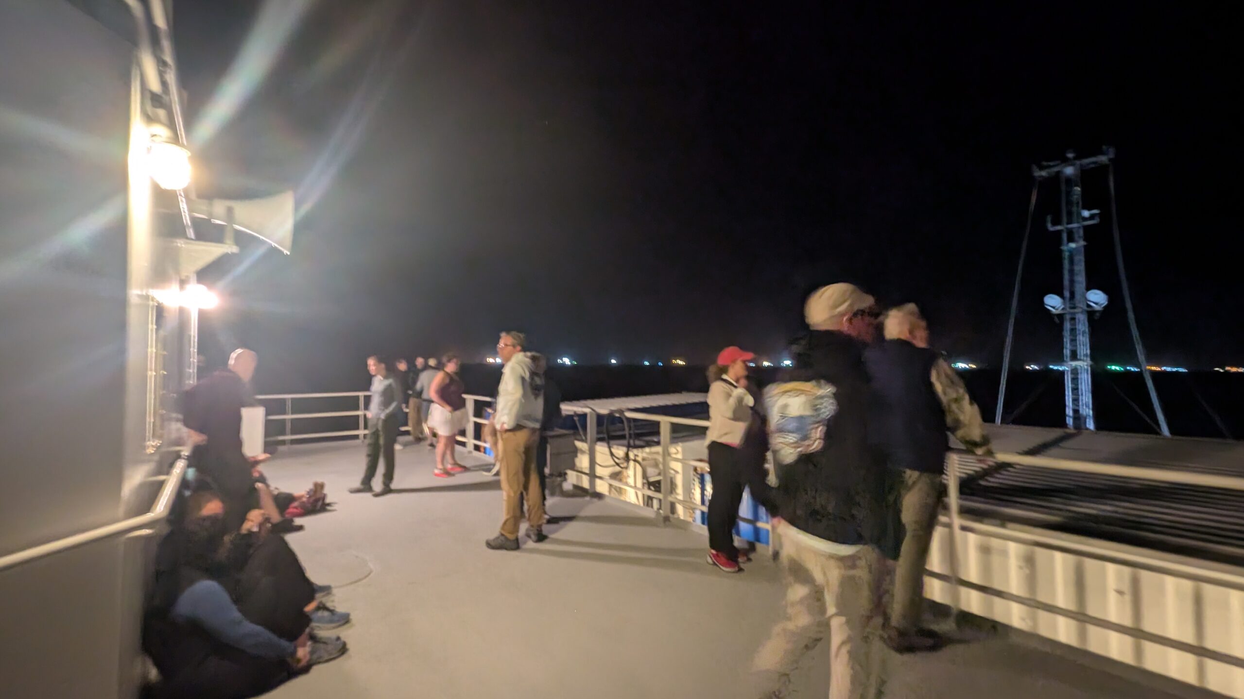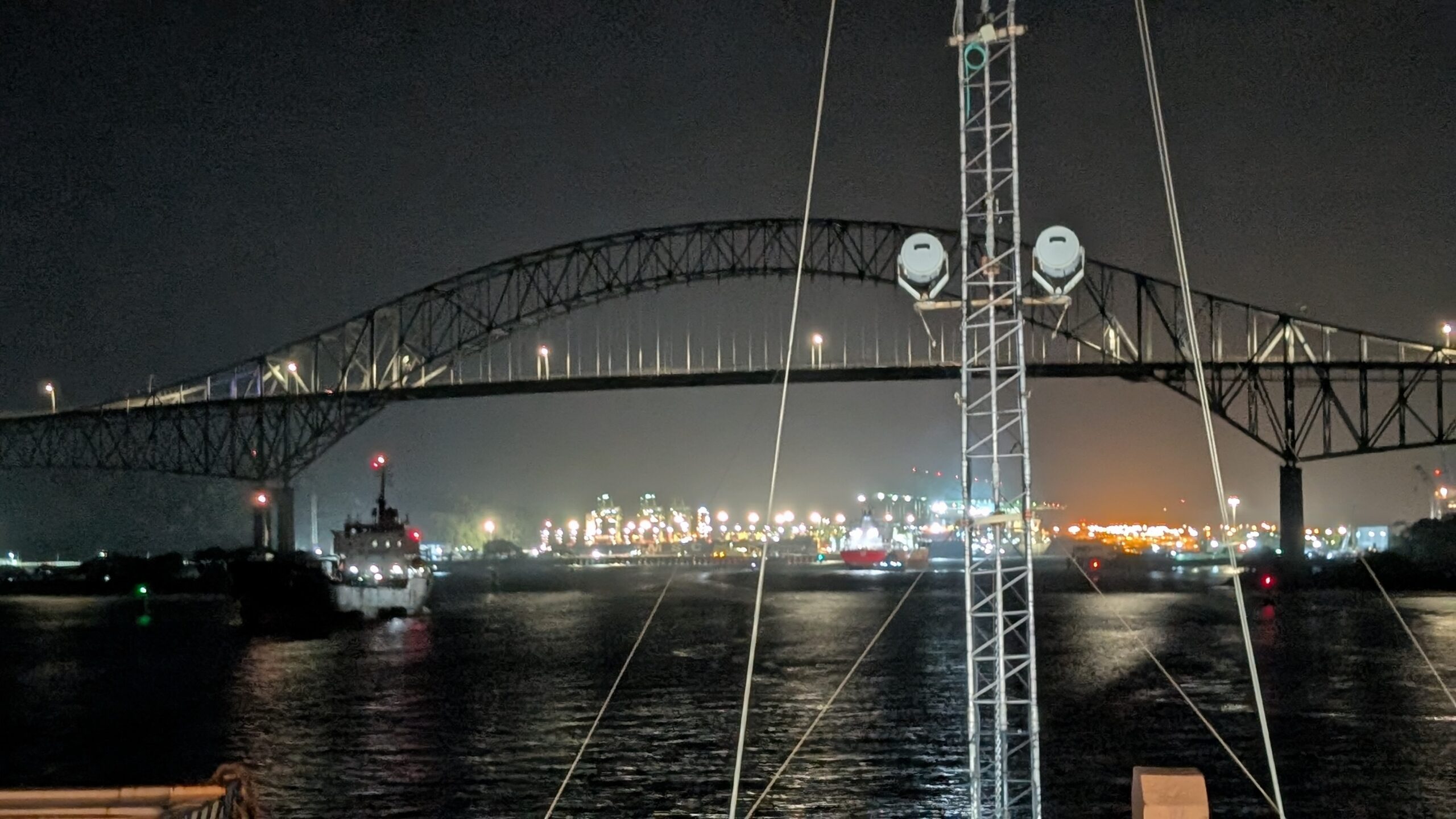 I learned while writing this that this is actually our program’s first time having students go through the canal. Every member of our team was hanging out on the O3 deck from 1830 until 0200 (for all you non-boat people, that’s about 6:30pm till 2:00am). It was in my opinion the coolest part of the day, and while the time spent waiting was well spent chatting with each other and the crew, seeing the canal and the different locks work was the most incredible part. There were cable cars attached by linemen who came on the boat, we saw dredging vessels and birds on the lake after the second lock, and the locks themselves were mechanical marvels! Most of us collapsed into bed long before the end was reached, though a lot of the crew were on shift throughout the canal until 0530, when the R/V Atlantis entered into the Atlantic Ocean and set course for Tampa.