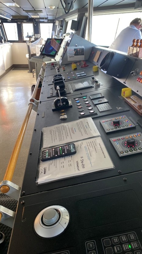 We also had the chance to tour the bridge alongside fellow NMC alum and Third Mate Brittni, who guided us through the ship’s navigational components. Abrian suggested we check out the onboard sextant—an unexpected throwback to my OSA school days in the ‘90s. Seeing the ship’s instrumentation reinforced just how far technology has come since my time as an OS. The modern bridge bears little resemblance to the USS Aylwin, where I served. Below are some photos of my ship and the combat information center, my workspace back in 1990.