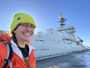Hello! I’m Dr. Sheldon Turner. As the chairperson of the science department and a professor of geology and environmental science at Triton College, a community college just outside Chicago, I’m so excited for this opportunity to mentor college students on this STEMSEAS expedition. My academic background is in geoscience education research, specializing in decision-making and visualizations related to water resources. I’m used to taking students to rivers or helping them think about groundwater, and love applying these skills to ocean science. With my science department, I have the honor of running a dedicated science laboratory for community college students to participate in authentic research experiences and build a sense of belonging in STEM fields. I’m excited to take the experiences and data collected on this STEMSEAS expedition back to campus to inspire future student research projects!