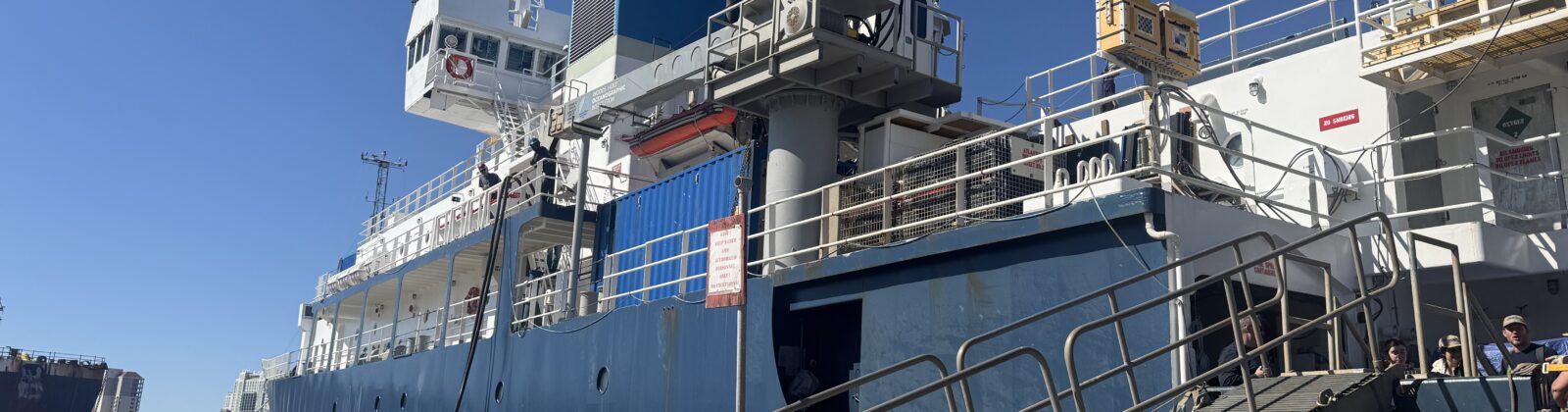 Tampa Bay welcomed us with whistling dolphins as we were piloted into the port. Most of our morning consisted of scanning the horizon for wildlife and barrier islands until the R/V Atlantis was docked and cleared customs. As soon as we got the signal from the bridge, we headed off the ship. But before we left, we met one of the scientist leading expedition AT 50-45 on the R/V Atlantis, the expedition prior to our arrival. Their mission was to collect samples from a recent submarine eruption using the Jason ROV. This eruption occurred on April 28th and 29th, 2025 on the East Pacific Rise. The samples consisted of some of the youngest glassy basalt on the planet. He explained the samples got their texture from the almost instantaneous cooling the erupting lava was subjected to. To top it off, we were offered some small pieces of sample rock the science team collected which was very exciting for STEMSEAS’ participants and mentors.