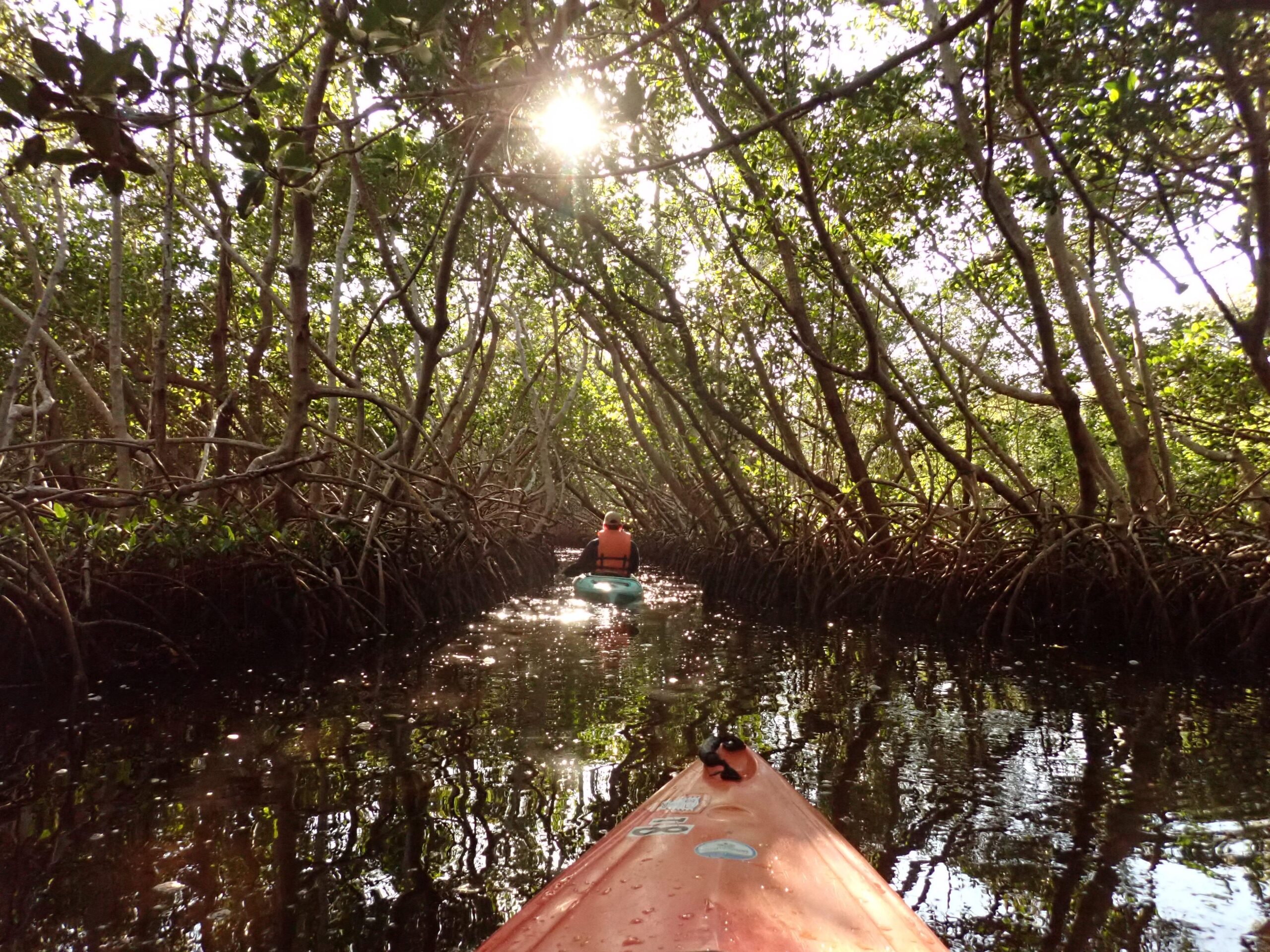 Pretty quickly after, were back on land for the first time in seven days. The plan was to go to Weedon Island Preserve, which is a protected natural area of St. Petersburg, FL. We rented kayaks and explored mangrove forests for about two hours. Mangroves are an integral part of the Florida coastal ecosystem and environment. They serve several purposes including carbon storage and sequestration, coastal barrier protection, and act as a nursery habitat for aquatic species and birds. Mangroves’ also have a unique root system that are adapted to their specific environment which is subject to flooding and is often salty, low in oxygen and high in organic matter. This root system generally comprises of areal and prop roots meant for gas uptake and stabilization. We saw some of this in action, as we made our way through narrows with mangroves to each side and overhead. Clear patches with stocky, conical roots jutting from the silt and mud interrupted the otherwise teeming forest. Outside of the confines of the mangrove forest, several of us spotted rays, a shark, fish and birds which just validated how rich this environment was.